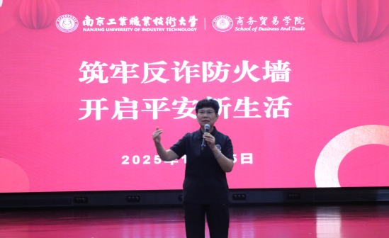 为切实提升2025级新生的安全防范意识,筑牢校园反诈“安全线”,10月15日,商务贸易学院成功举办了以“筑牢反诈防火墙,开启平安新生活”为主题的新生安全教育讲座。本次讲座特邀南京市公安局刑警支队民警陈红燕担任主讲,为初入大学校园的学子们上了一堂生动而深刻的反诈“必修课”。