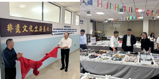 随后,校企代表移步至求真楼206室,邢益军和徐雨祥共同为“非遗文化出海基地”揭牌。该基地通过校企共建,构建“实训+实战”沉浸式教学体系,打造非遗产品数字化开发、跨境直播与文化IP运营等项目,推动中华优秀传统文化走向世界。