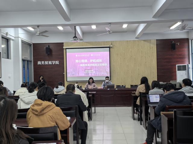 为提升班主任、辅导员队伍的心理育人水平与职业胜任力,12月10日下午,商务贸易学院在求真楼404会议室举办“育心育德,护航成长”班主任培训专题讲座。本次讲座特邀南京邮电大学心理咨询中心曲海涛老师主讲,主题为“从共情出发”。讲座由学院党委副书记王静主持,全体班主任、辅导员参加。