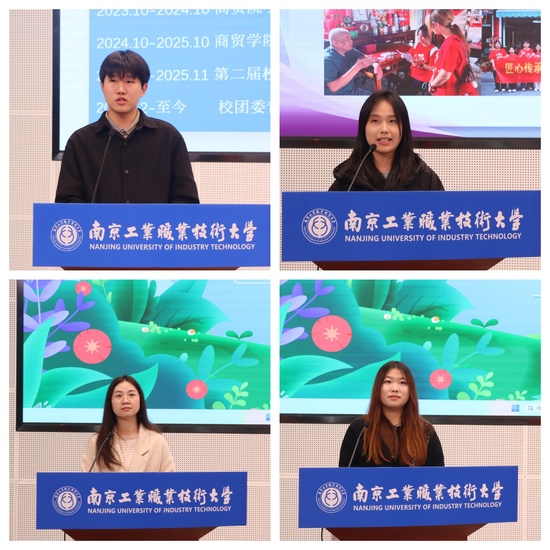 黄炎培特等奖学金获得者仇如飞同学分享了他在南工的成长故事,他鼓励学弟学妹们珍惜时光,勇敢尝试,在行动中书写属于自己的青春篇章。他说:“梦想不是等来的,而是一步步走出来的。”黄炎培自强自立奖学金获得者陈妮鼓励学弟学妹们找准自身定位,既要深耕专业知识筑牢基础,也要积极参与实践活动锤炼能力,更要心怀责任与热爱,在属于自己的青春赛道上奋力奔跑,用实际行动诠释新时代大学生的自强本色。黄炎培道德风尚奖学金获得者赵飞扬同学分享了她聚焦残疾人就业难题,与句容残联合作发起“助残钩织全链帮扶计划”的经历。她寄语学弟学妹:“大学是一场‘自定义’的旅程,勇敢试错、持续行动,在服务与创造中寻找属于自己的光芒。”黄炎培社会服务奖学金获得者杨树凤同学分享了她在志愿服务中从参与者到组织者的成长历程,她鼓励大家诚实面对初心、勇于从最小行动开始,不必等待完美;建议大家善用信息平台,主动探索发现机会,在尝试中拓展能力边界,用行动遇见更好的自己。