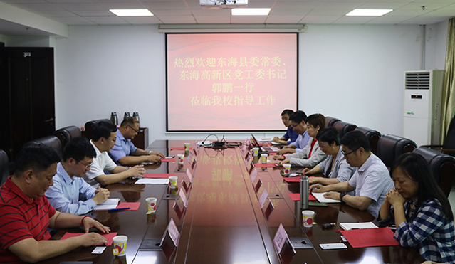 5月21日,江苏省东海县委常委、东海高新区党工委书记郭鹏一行来我校访问。交流会在行政楼317会议室召开。学校党委副书记苏小冬、科技处处长孟庆杰、计算机与软件学院党总支书记刘英慧、商贸学院班子及教师代表出席了会议。