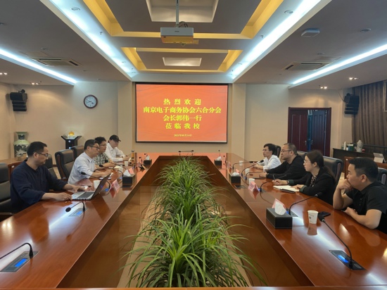 2021年5月14日上午,南京电子商务协会六合分会会长郭伟一行来我校进行校企合作交流,会议在行政楼辅一楼会议室举行。南京电子商务协会六合分会会长、江苏南林碳业科技有限公司总经理郭伟、南京电子商务协会六合分会秘书长严胜娟、江苏南林碳业科技有限公司南林云商直播负责人陈庆、南京轩阳投资管理有限公司总经理王和兵,我校科技处处在孟庆杰、商务贸易学院院长阮晓文、艺术设计学院副院长孙静松、电子商务专任教师沈新淇等出席了此次活动。