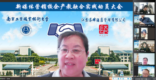 产教融合、校企协同育人是职业教育人才培养的重要途径。4月13日下午,商贸学院与江苏茶肆酒店管理有限公司在线上举办了新媒体营销校企产教融合实践动员会。公司总经理孙绪芹、营销部经理陆璇,学院党总支书记陈桂兰、院长阮晓文、电子商务团队相关老师和电子商务专业学生共同参与了此次会议。