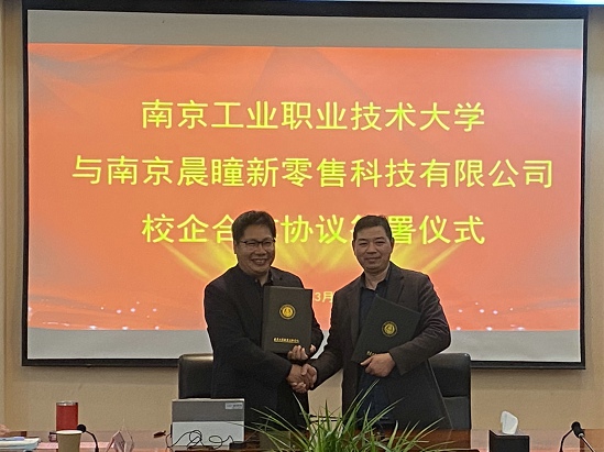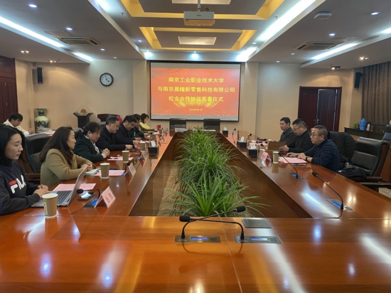 3月1日下午,我校与南京晨瞳新零售科技有限公司的校企合作签约仪式在行政楼辅一楼会议室顺利举行。江苏视科新材料股份有限公司董事长王明华、财务总监胡士刚,南京晨瞳新零售科技有限公司总经理刘伟,校党委常委、副校长潘旭海,商务贸易学院领导班子及相关教师共同出席此次签约仪式。会议由商务贸易学院院长阮晓文主持。